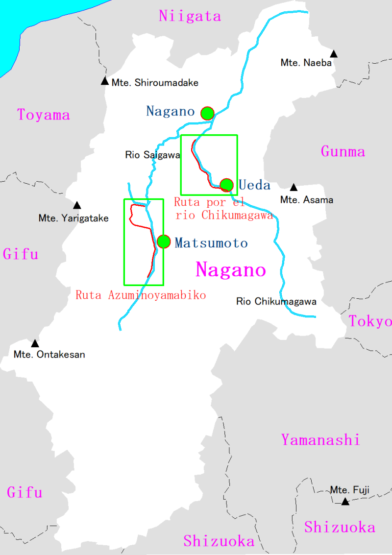 ■Camino para bici de Ueda a Nagano (Ruta por el rio Chíkumagawa) ■Camino para bici de Hotaka a Shiojiri (Ruta Azuminoyamabiko)