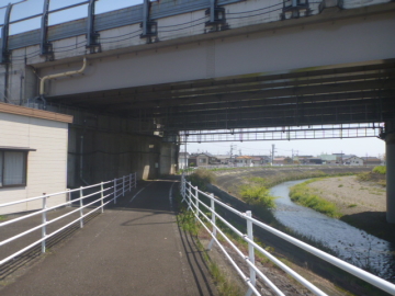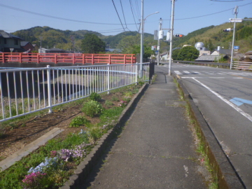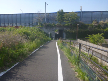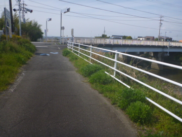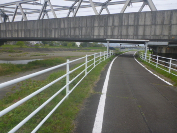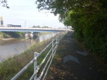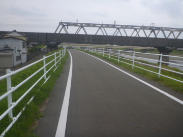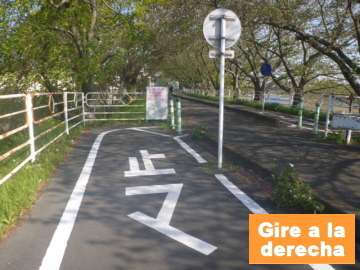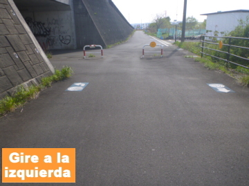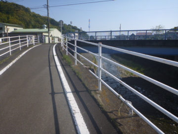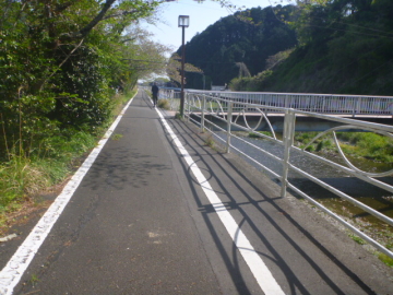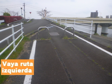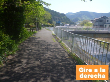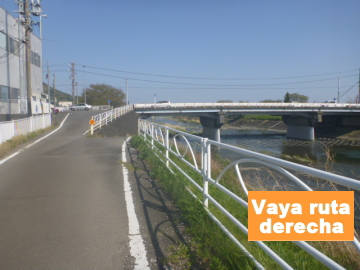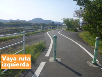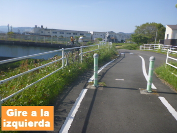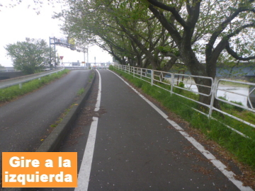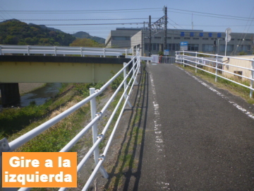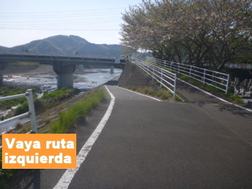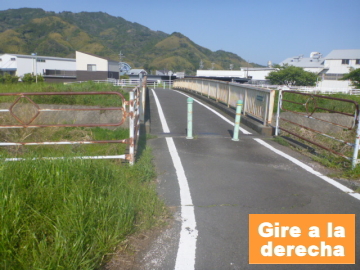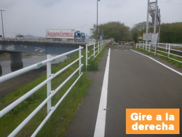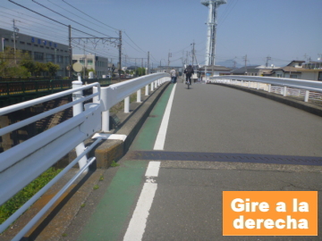 | Entrar en el camino para bici en el puente Marikogawa |