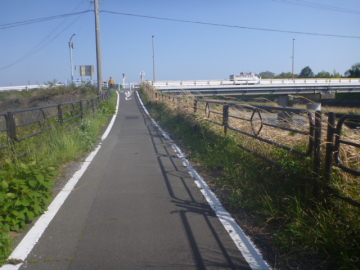 | Entrar en el camino para bici en el puente Toizumi |