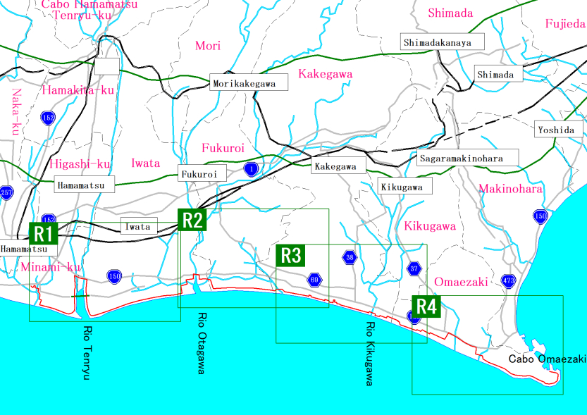 Mapa de la ruta por Hamamatsu-Omaezaki