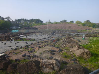 El sitio donde los ruinas del castillo son excavado y la estatua de bronce