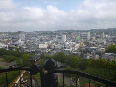 Un paisaje desde el torreón del castillo Kakegawa y el palacio del castillo.