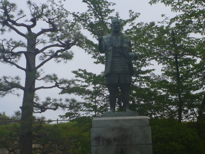 El castillo Hamamatsu y la estatua de bronce del shogun famoso Ieyasu Tokugawa.