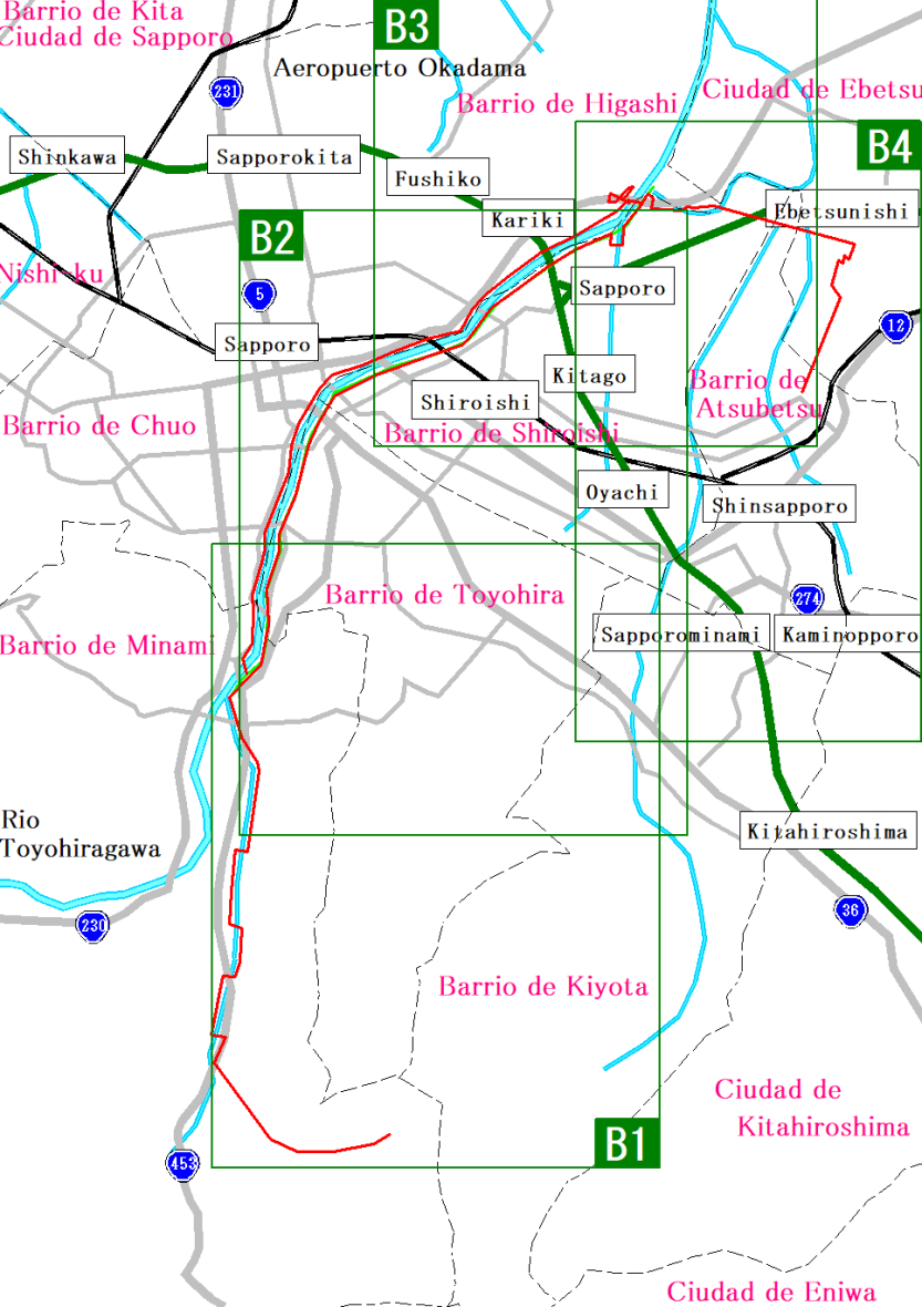 Mapa de la ruta por el río Toyohirakawa