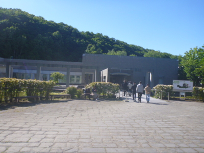 En el parque están un edificio del museo y un museo al aire libre donde