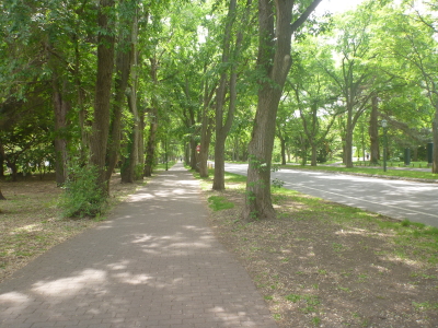 campus inmenso de la universidad, están el bosque Elm donde están arboles