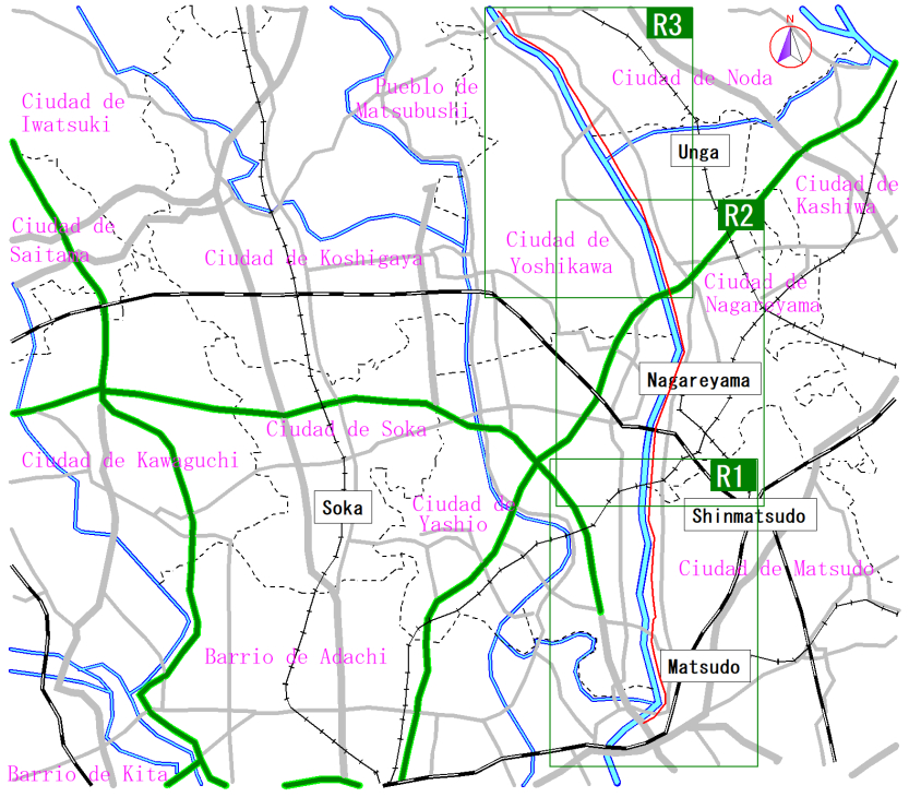 Mapa de la ruta por el río Edogawa