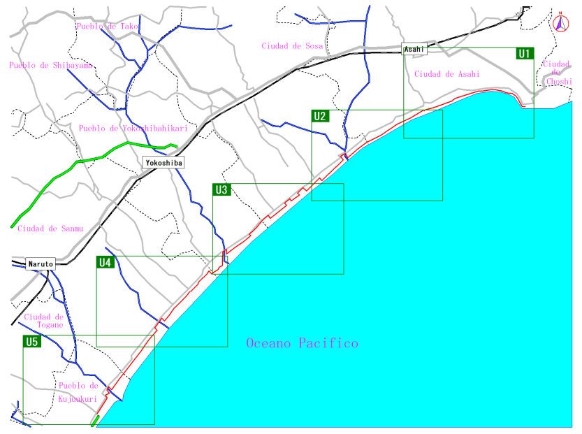 Mapa de la ruta por el norte de la costa Kujukuri