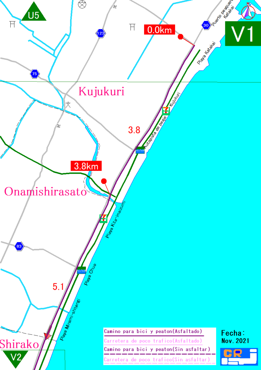Mapa de la ruta por el sur de la costa Kujukuri
