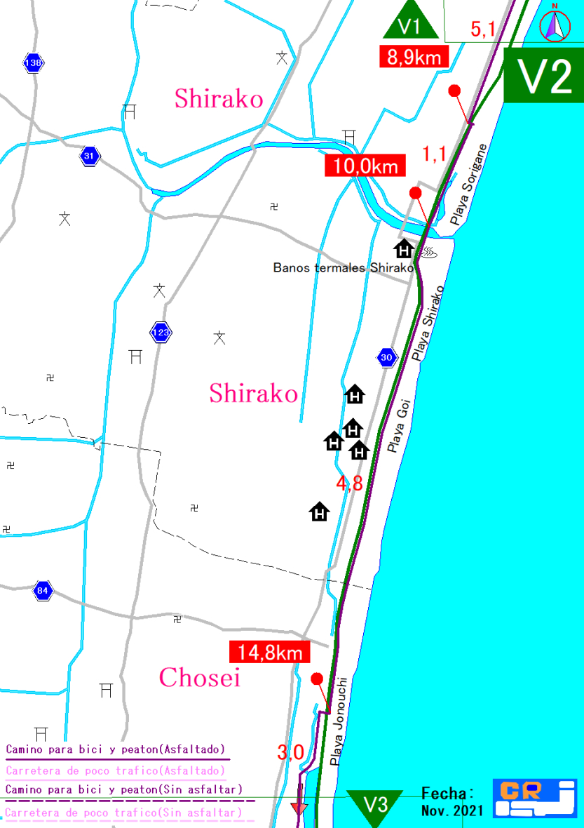 Mapa de la ruta por el sur de la costa Kujukuri