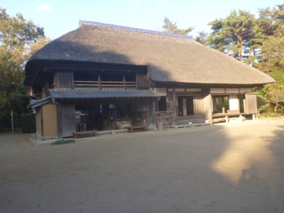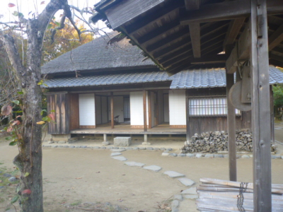 Alli, hay una casa del agricultor, unas tiendas y una casa del samurai.