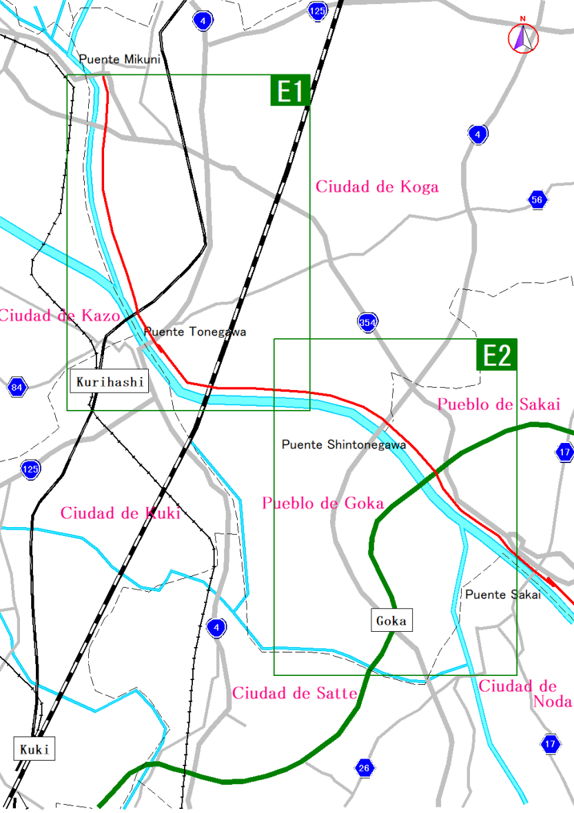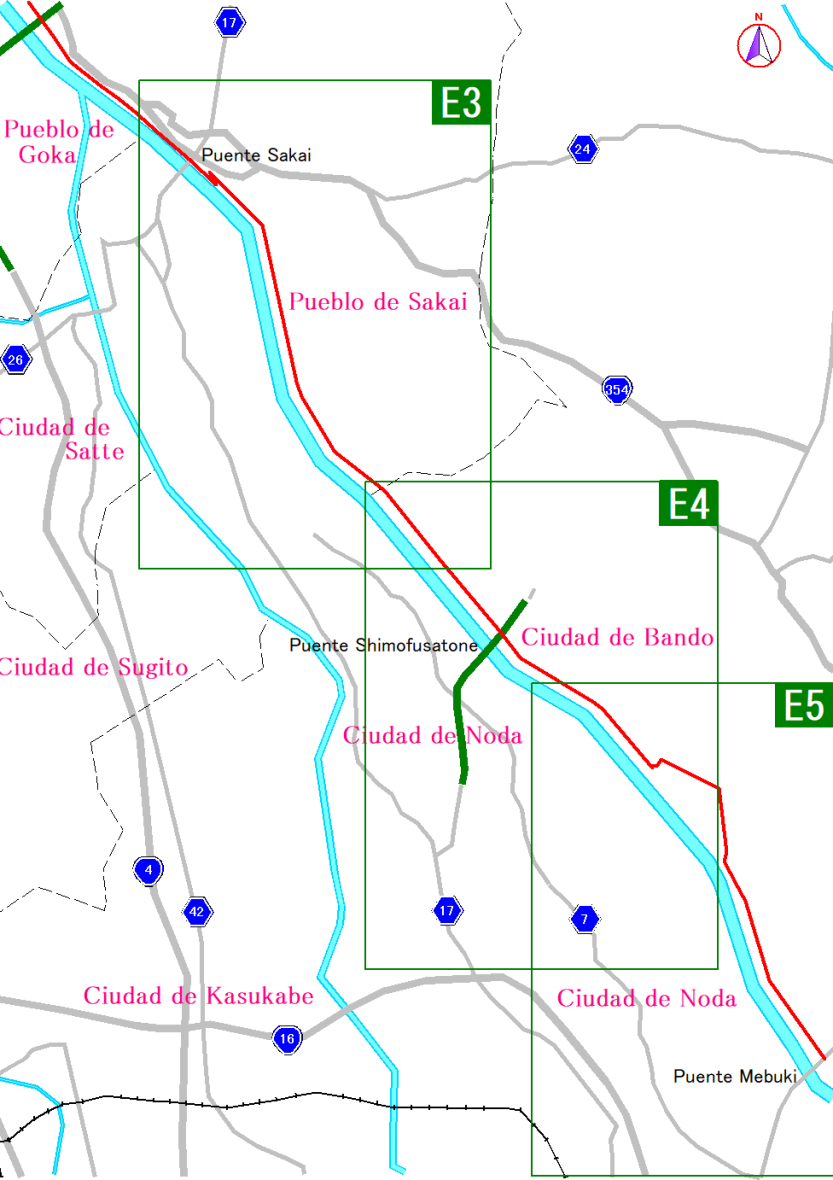 Mapa de la ruta por los ríos Tone y Watarasegawa
