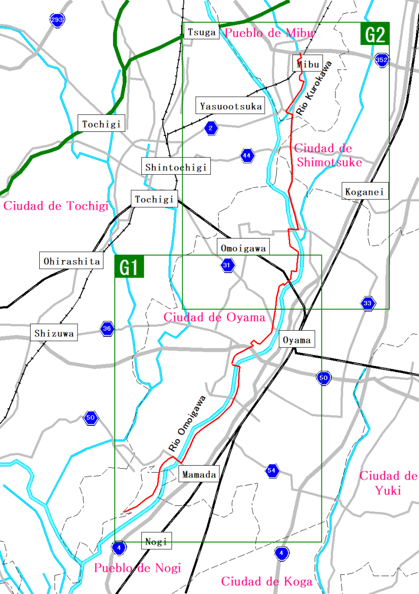 Mapa de la ruta por los ríos Omoigawa y Kurokawa