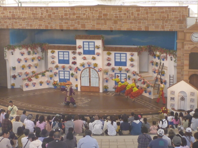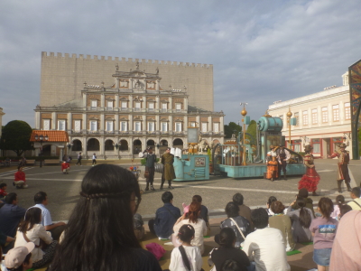En este parque estan espectáculos, desfiles, atracciones, hilera de casas
