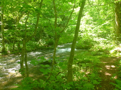 a lo largo del forrente desde el lago Towada hasta el pueblo de Yakeyama
