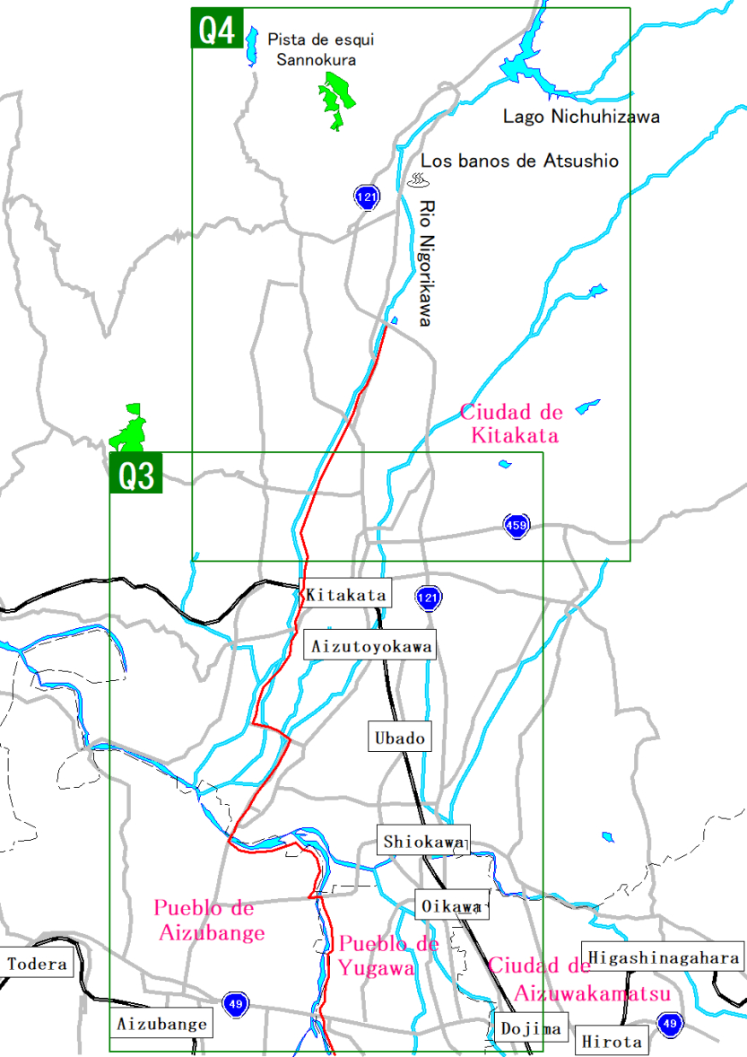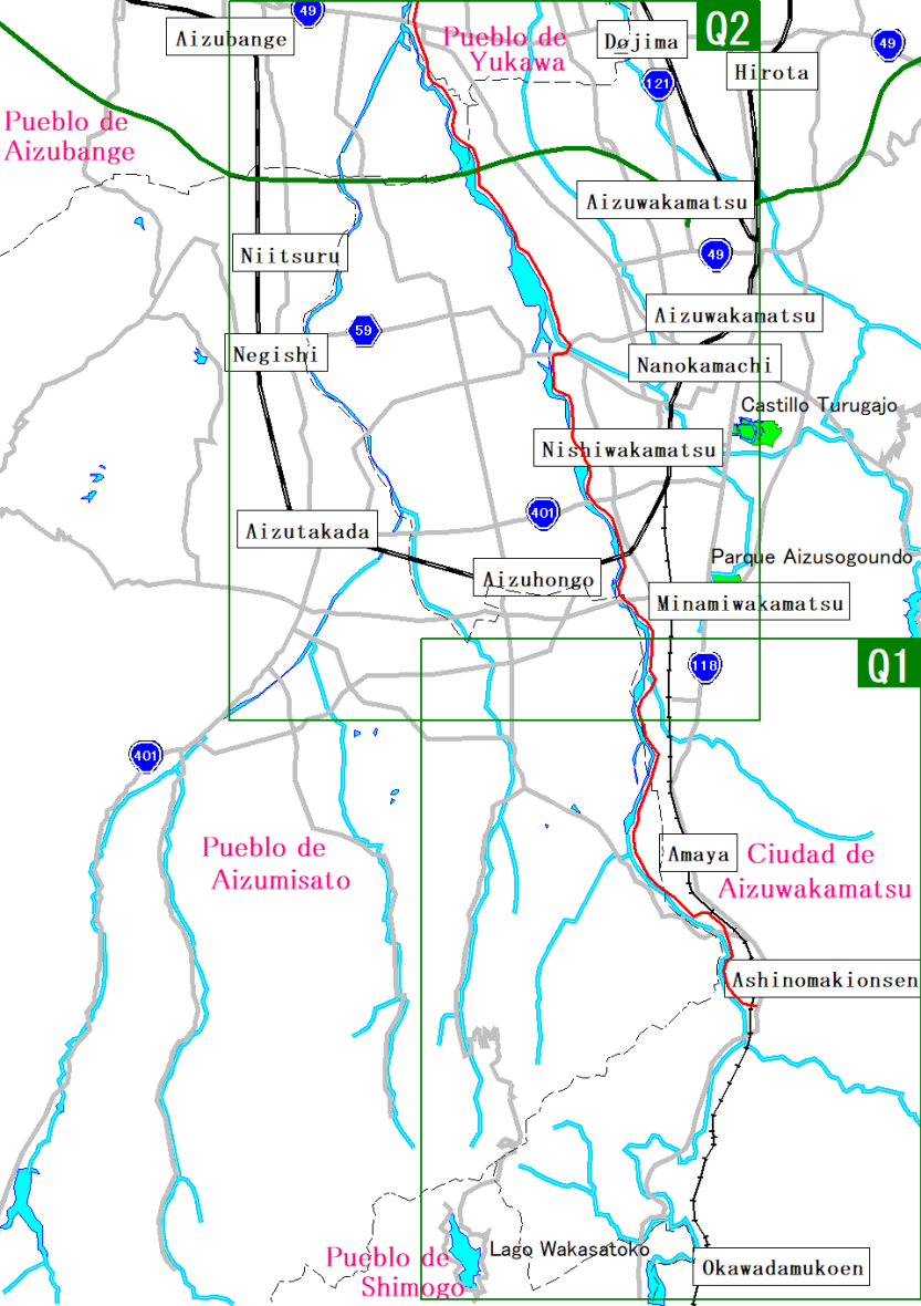 Mapa de la ruta por Okawa-Kitakata